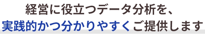 私たちは 「データ分析アドバイザー事務所」 として、経営全般に関わる課題を数学的手法を用いてサポートいたします。